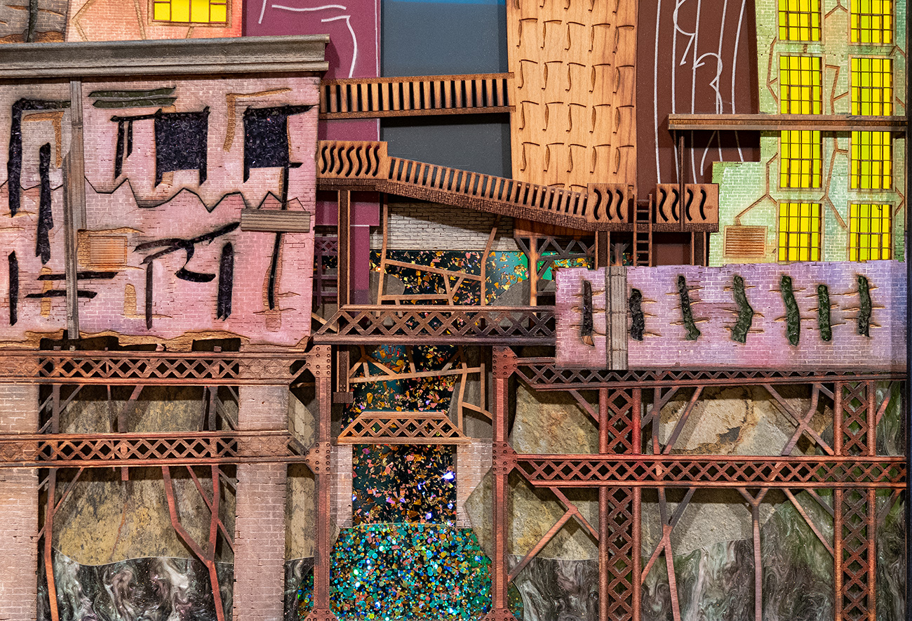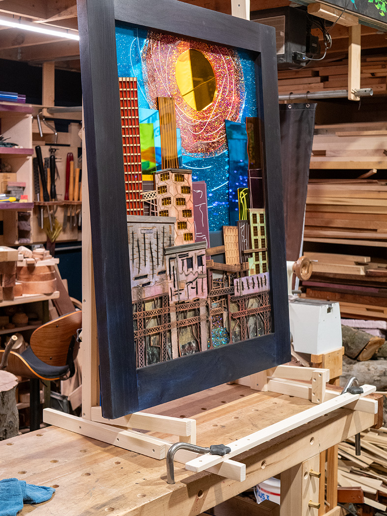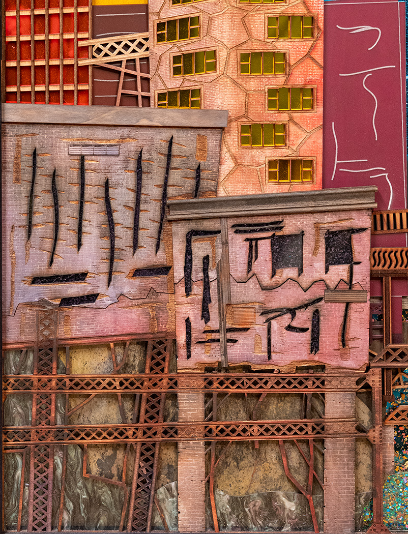 This was a special commissioned piece for some lovely people. Thus far it's the largest piece I've done -- 4 feet high with the frame and 45 pounds! I really love this piece. As the title implies, it's about rebuilding -- building something better out of what has come before.