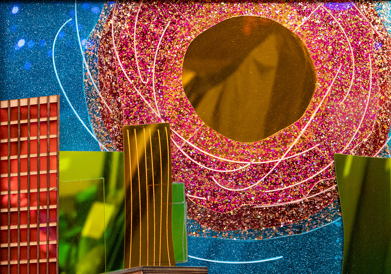 wood, acrylic sheet, stone, mirror